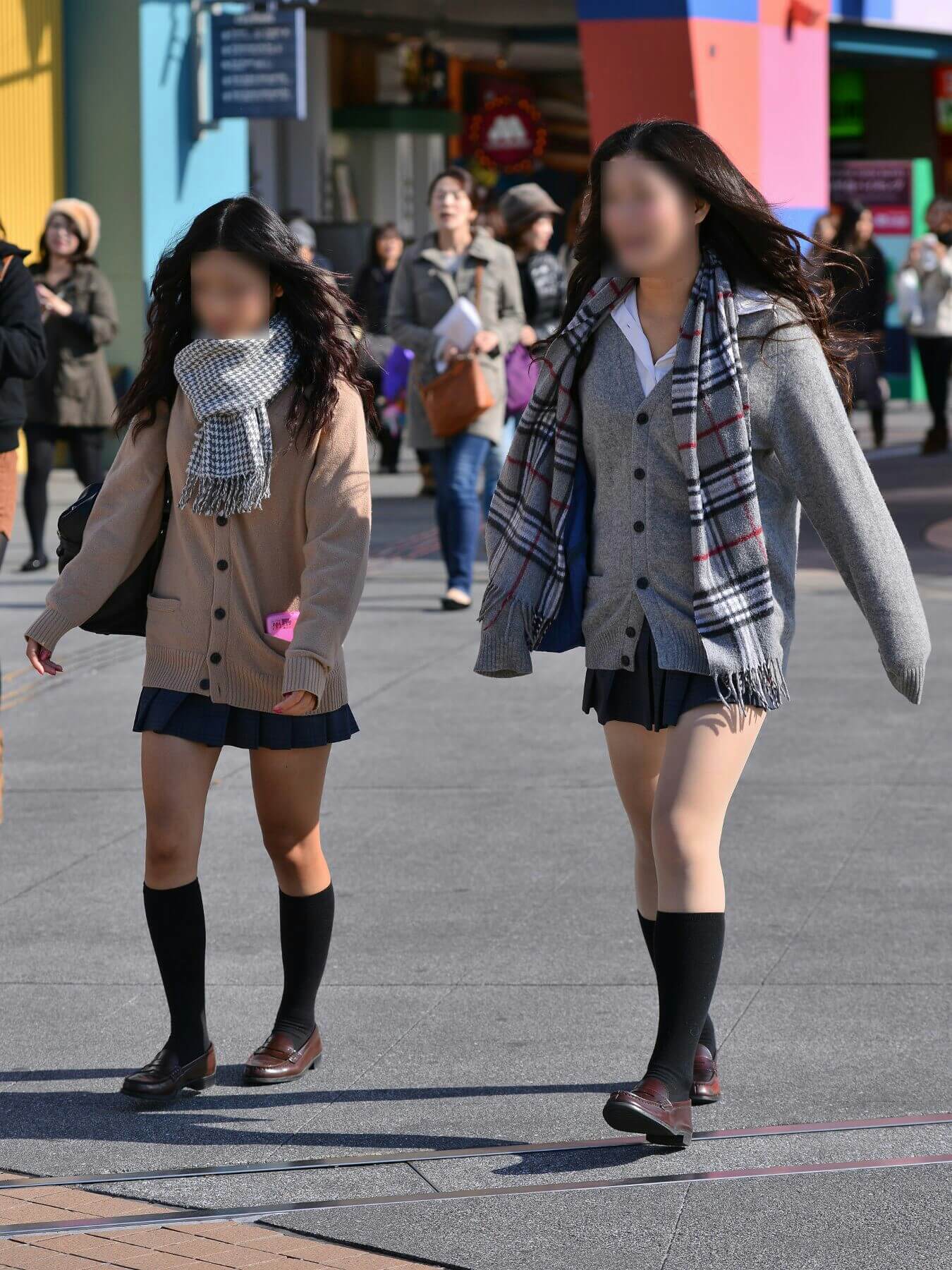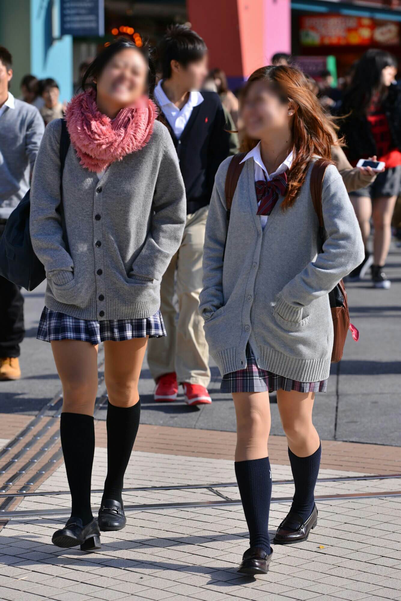 ④は、右端で半分切れてしまっている娘の方が気になるね。Cardiganを着てないのがイイ! やっぱりBlouse姿の方が見たいよ! SkirtがConcealされないのもいいよね。