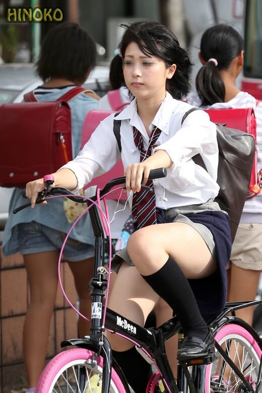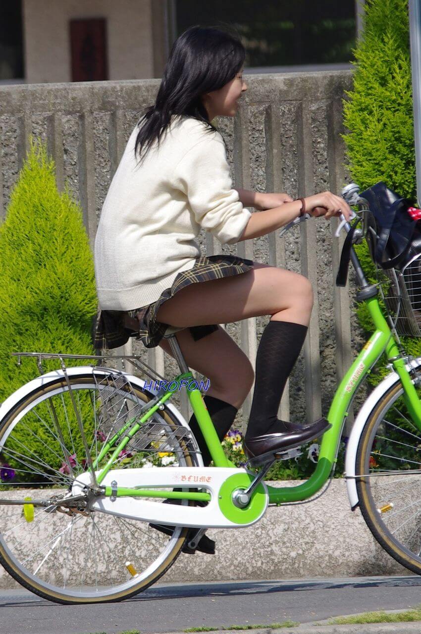 【画像】チャリンコ女子高生のチラリズムに目がいってしまうよな