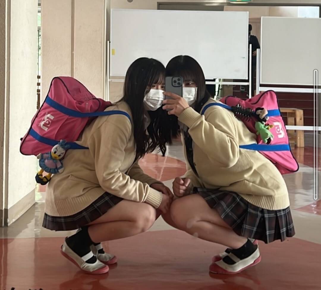 2のjkたちはスカート丈35cmくらいしかなさそう