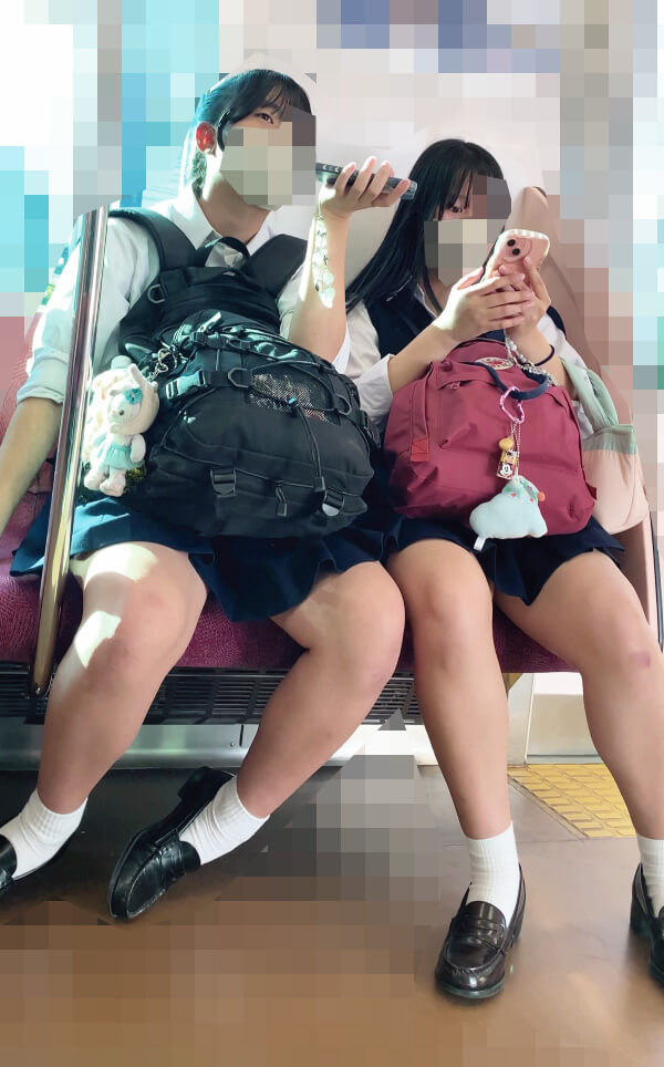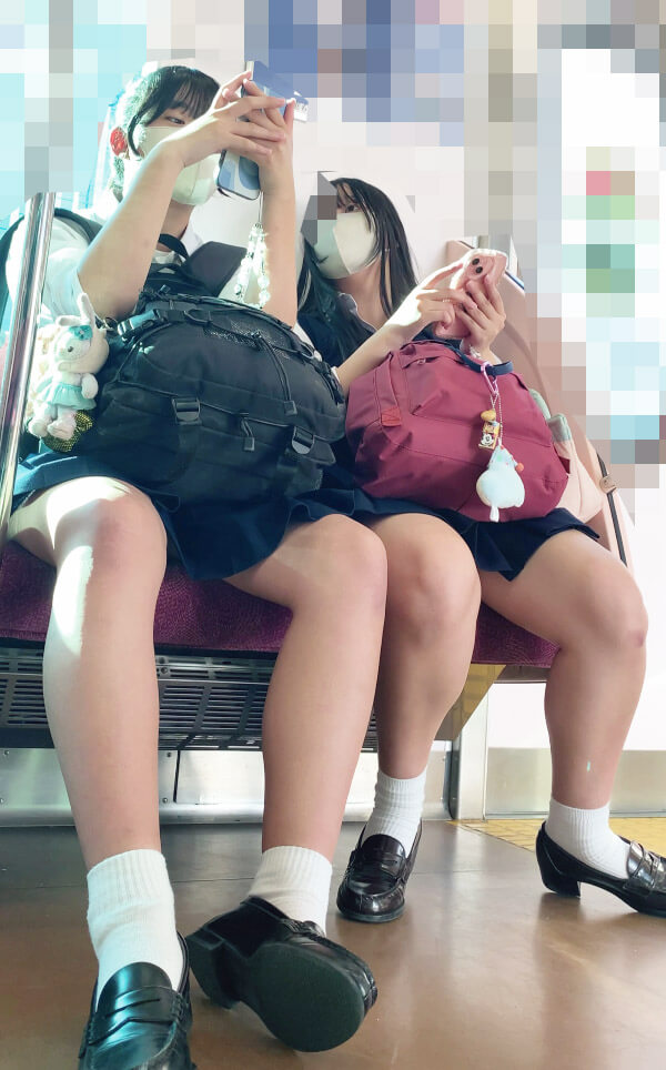 「女子高生のナマ足太ももむっちぃぃ♥️ん?ローファー脱いだ靴下もみたいの?いいよー、なんなら嗅いでも♥️」「「ほらもっと、しこしこ♥️」」